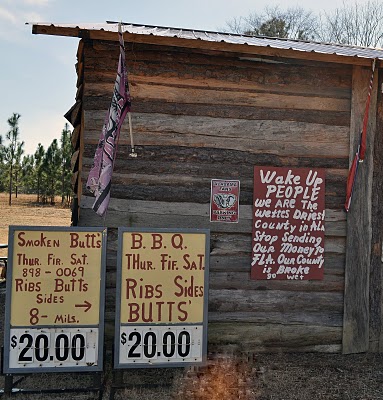 We had to leave the meat to be processed and we just kind of took our time heading back to Destin as this was a gorgeous spring day. North Florida gets cold in the winter (NOT as cold as Nebraska) but this was still a cold winter overall, so the air was still crisp, but so pretty. As we are driving, I spotted this nice little smokehouse on the side of the road and I had to quickly take a few photos. The owner was a little bitter, as you may be able to determine via the photos of her now abandoned “out of business” smokehouse.